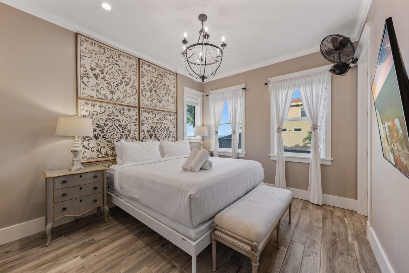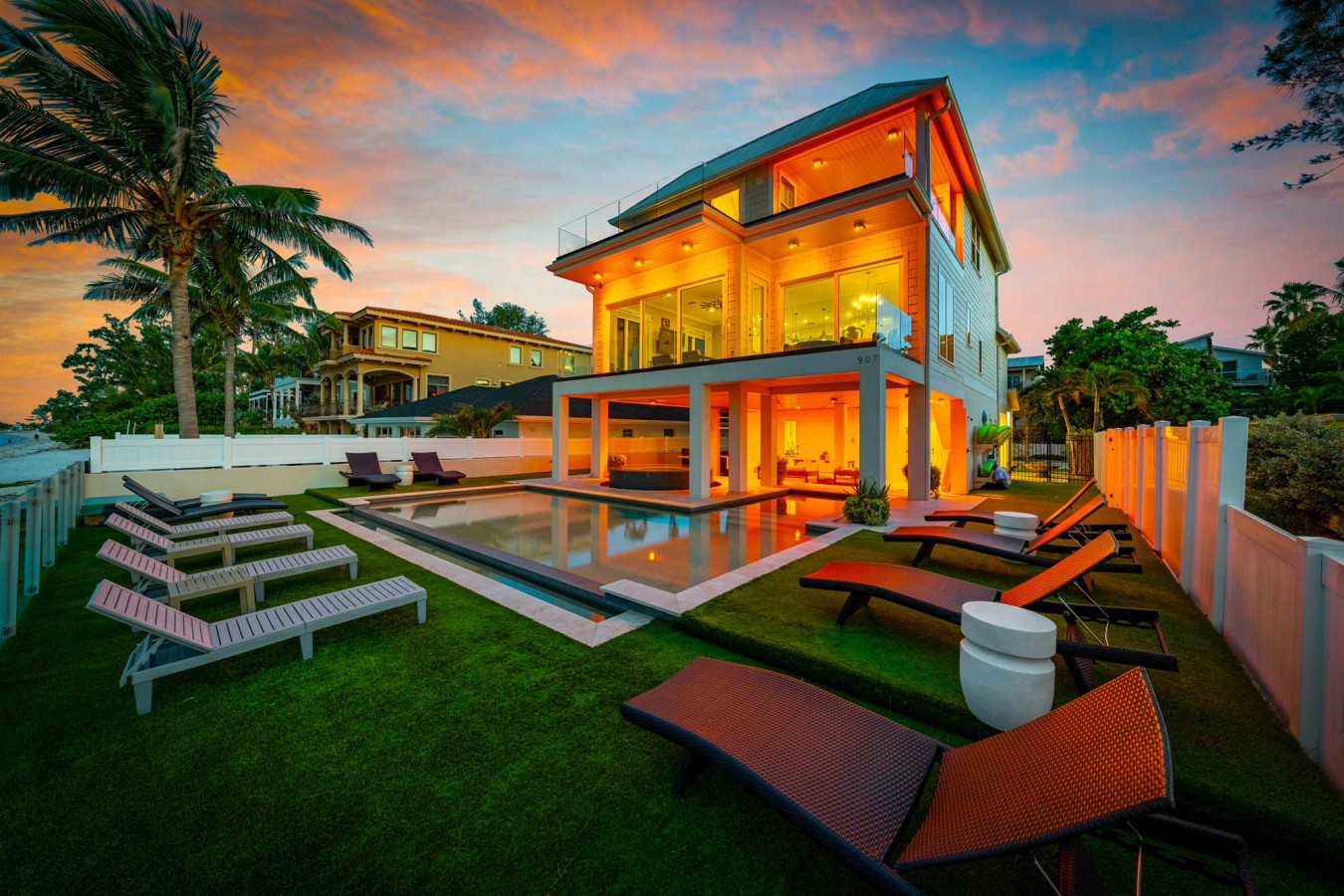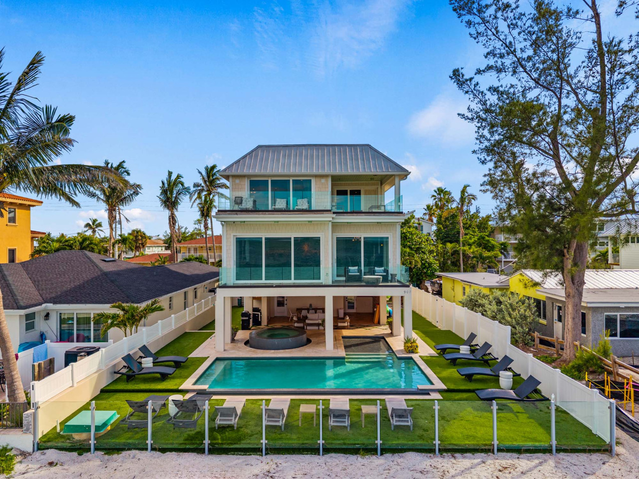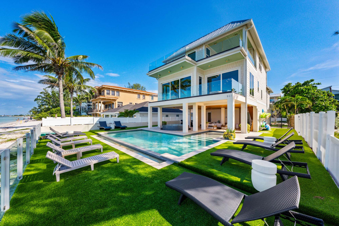 Welcome to paradise! This beachfront blends modernity with relaxation to give your group a heavenly experience. Located in a prime location on the North End of Anna Maria Island, Cloud 9 has everything that your group needs for a perfect vacation. Each of the 4 bedrooms is professionally decorated and complete with King Beds, TVs, and En-Suite Bathrooms to make sure that your comfort is the top priority.