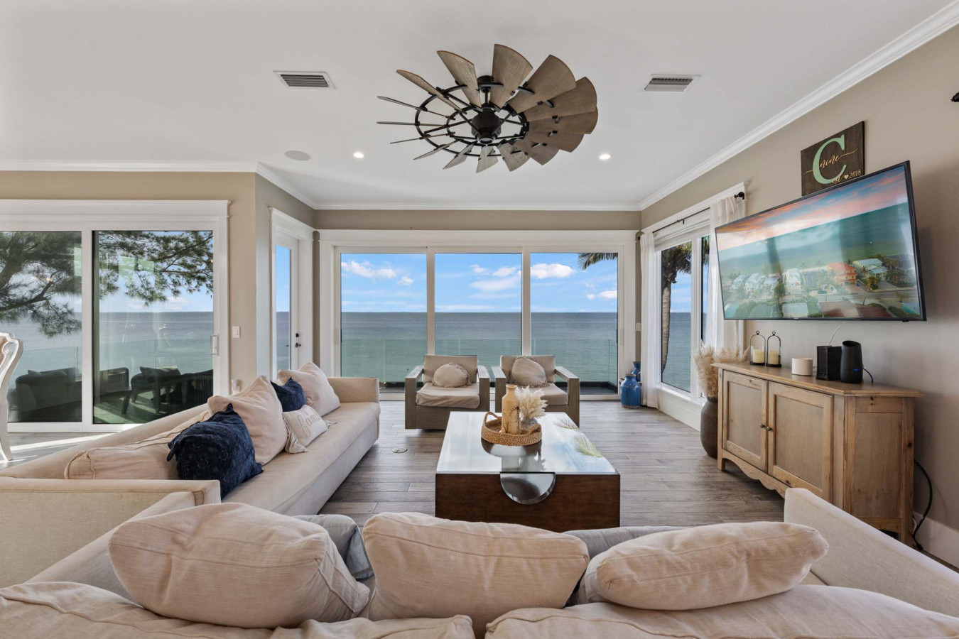 Your group will have easy beach access and a simple stroll to Bean Point in this private, residential neighborhood. After spending your day at the beach, come back and enjoy a movie on any one of the TVs in the space. If you’re still itching for more activity, your group can take out the bikes, kayaks, or paddle boards that all come included with Cloud 9.